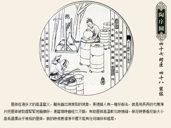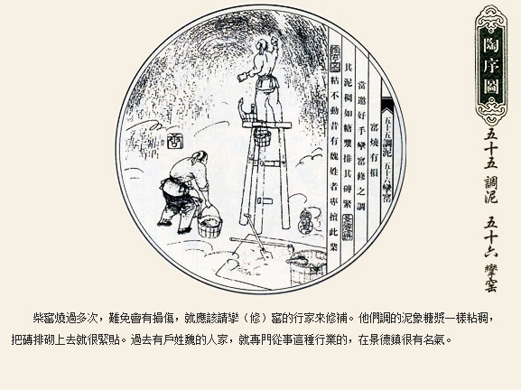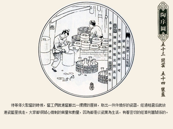 明代科学家宋应星的《天工开物》记载:“共计一坯之力,过手七十二,方克成器。”一只普通的杯子细分起来工序达到72道之多,每道工序都简化到不能再简化的程度。炼泥的只管炼泥,拉坯的只管拉坯,彩绘者也是画者画而不染,染者染而不画,如此明细分工提高了制瓷效率,也使景德镇瓷器得以成为全国瓷器的翘楚。